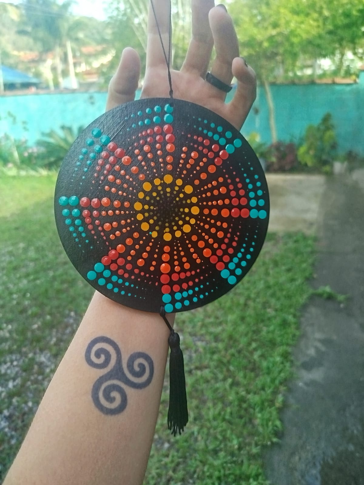 Essa mandala é ideal para colocar em lugar de trabalho onde precisa ativar a criatividade e também alegria