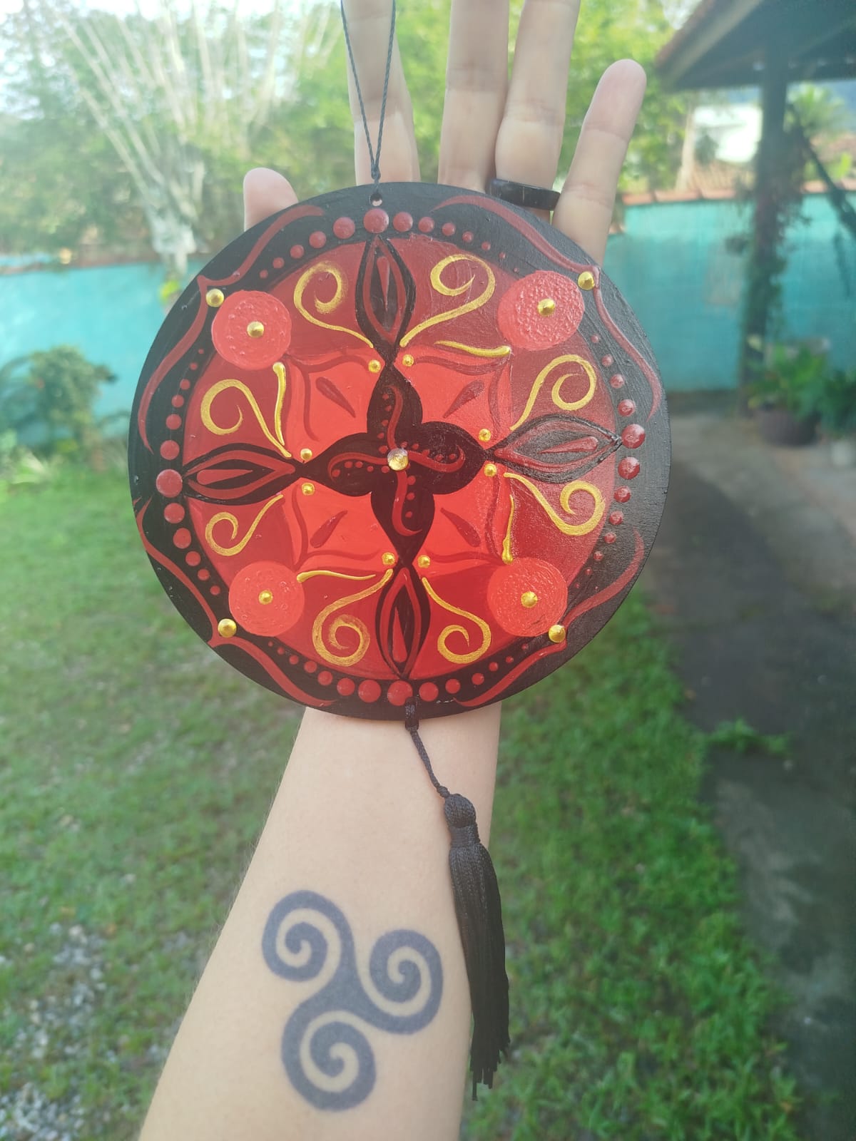 Essa mandala ativa cores de paixão, fogo, vibração quente, pode ajudar em questões de libido ao casal