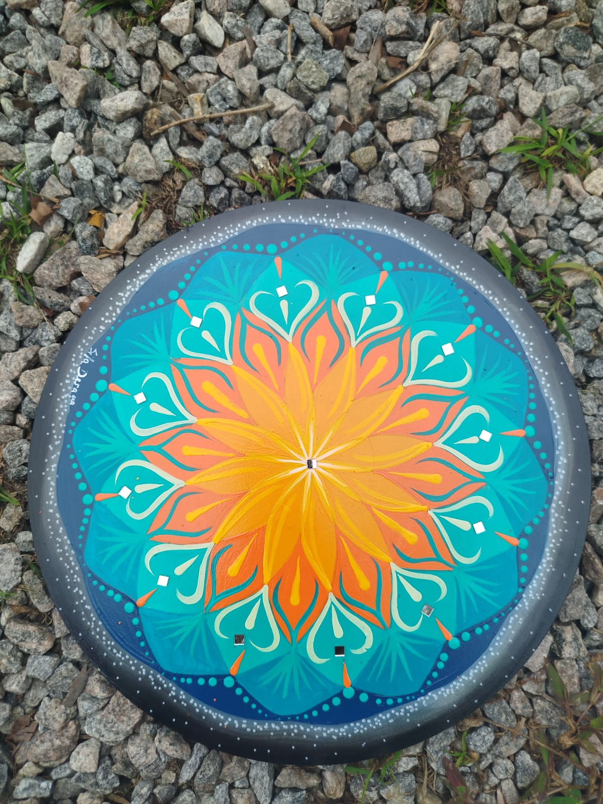 Significado: Essa mandala, utiliza o tom de laranja, aumentando sua frequência em vitalidade, saúde física e mental