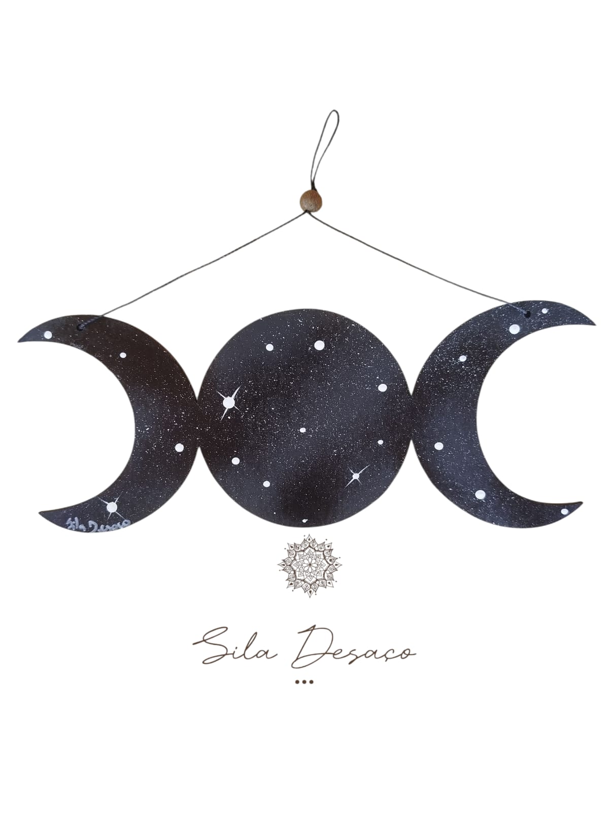 Esse mobile carrega a força da deusa tríplice, donzela, mãe e anciã.